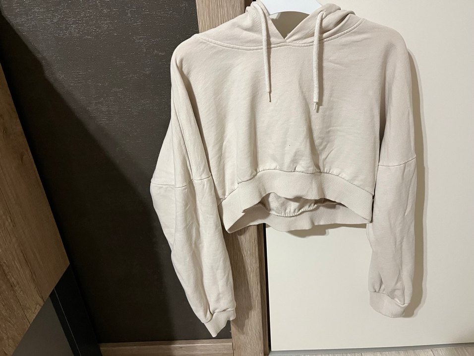 Beyaz Kapüşonlu Crop Salaş Sweatshirt