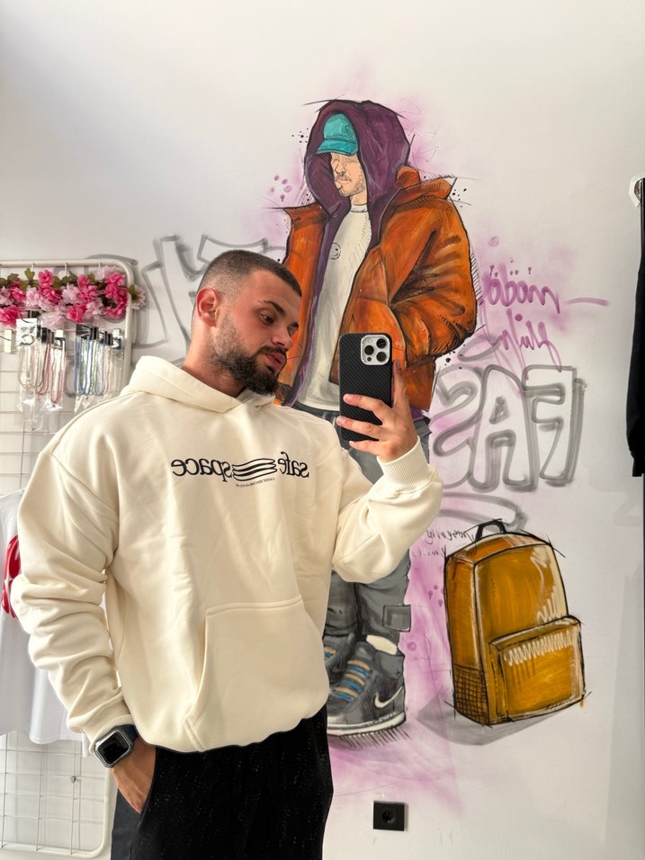 Krem, kapüşonlu ve uzun kollu, rahat kesim unisex hoodie. İçi şardonlu. S-M-L-XL-XXL BEDENLERİ MEVCUT. Kendi bedeninizi almanız önerilir.