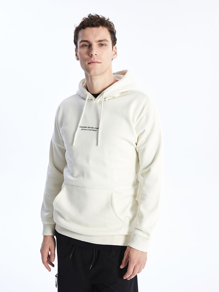 Beyaz Kapüşonlu Erkek Sweatshirt