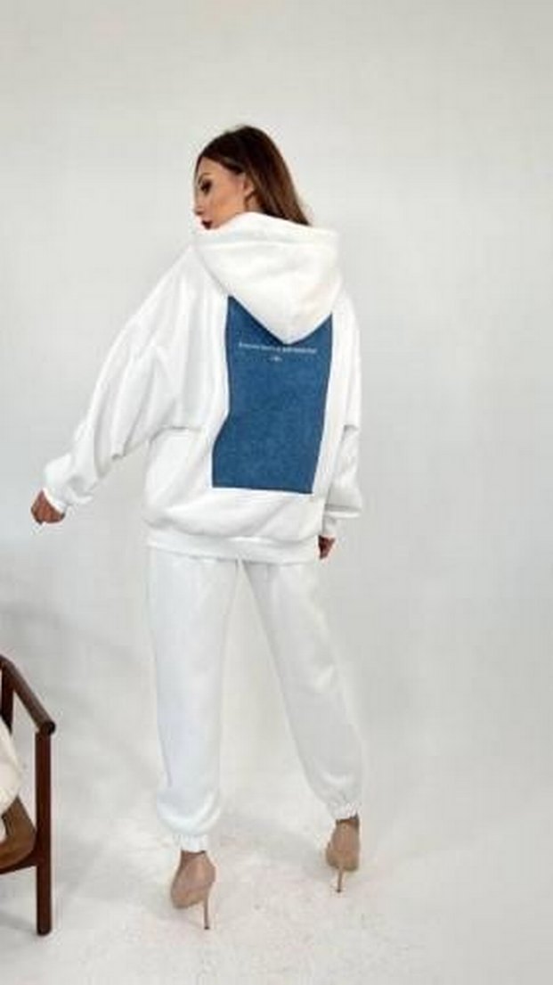 Ekru renk kapüşonlu kadın sweatshirt, bol kesim arkasinda "Everyone knows my path better than I do." yazılı denim baskı bulunur. , altı da vardır takımdır yeni etiketlidir