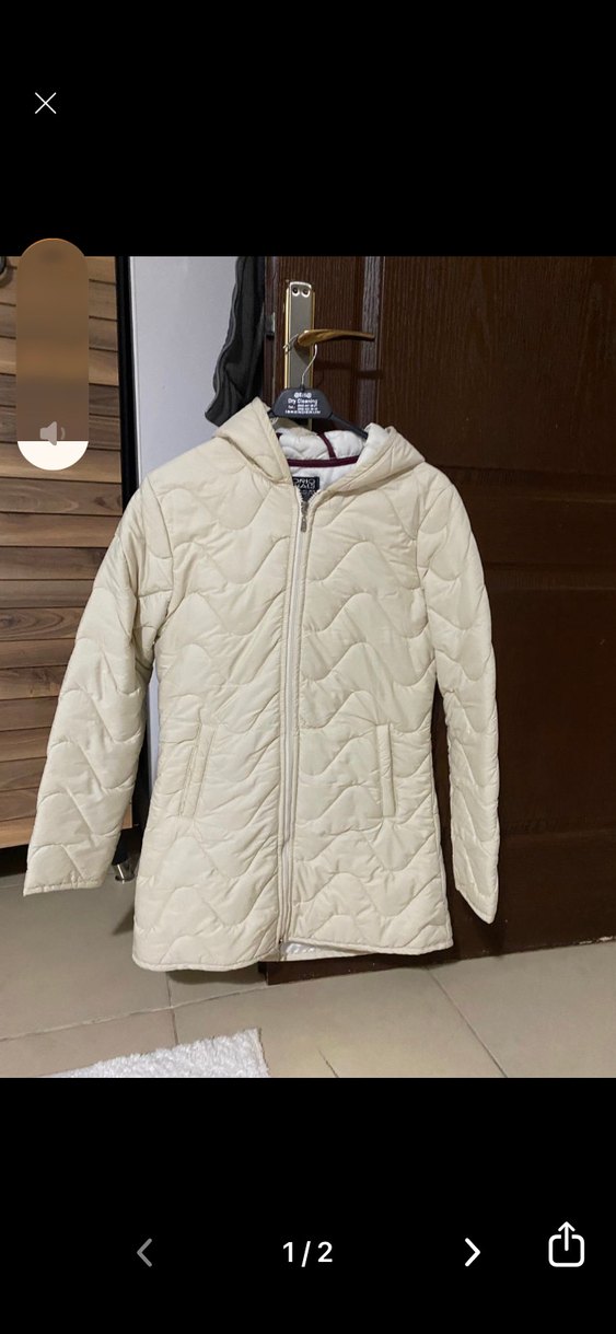 Beyaz Kapüşonlu Fermuarlı Kadın mont