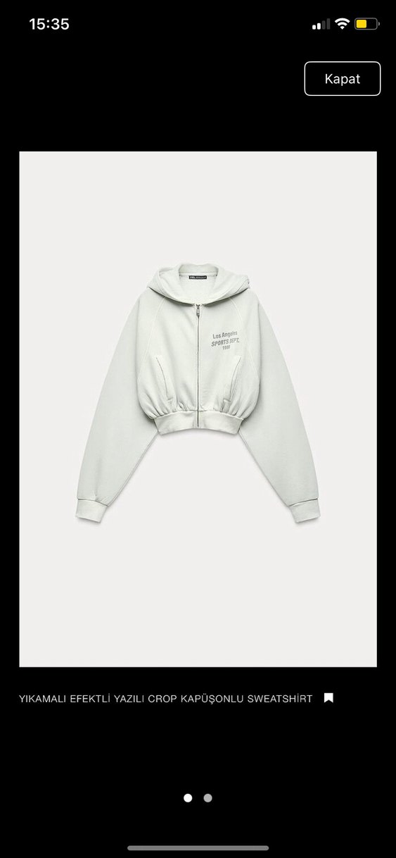 Dar kesim, kısa boy kadın sweatshirtü, uzun kollu ve kapüşonludur. Fermuarlı cepleri ve 'Los Angeles SPORTS DEPT.' baskısı bulunur. Yumuşak, sıcak kumaştan üretilmiştir. ️ 1 kere giyildi (normalde s giyiyorum m gayet iyi oldu. Xs-s giyenler alabilir) mesaj atın fiyatta yardımcı olacağım