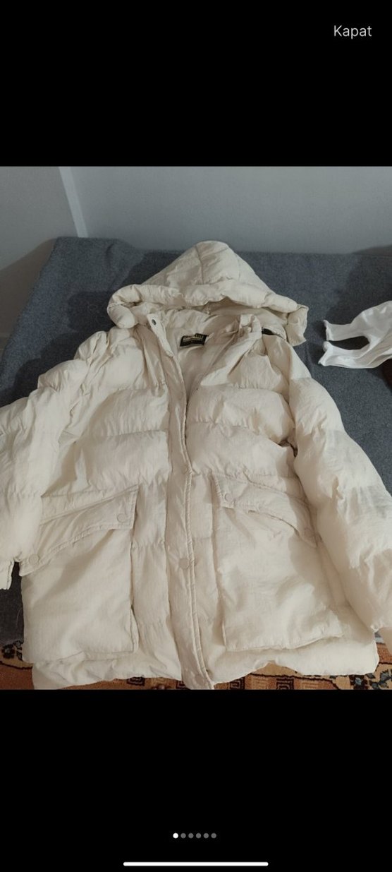 Beyaz, kapüşonlu, uzun kollu, kürk detaylı kadın kış montu. Notched lapel yakalı, midi boy, rahat ve sade tasarım, dış mekan için uygun.Arkadaşlar montu 2 ya da 3 kere giymişimdir onun dışında başka bir montum ve kabanım vardı ayrıca mont çok sıcak tutuyor