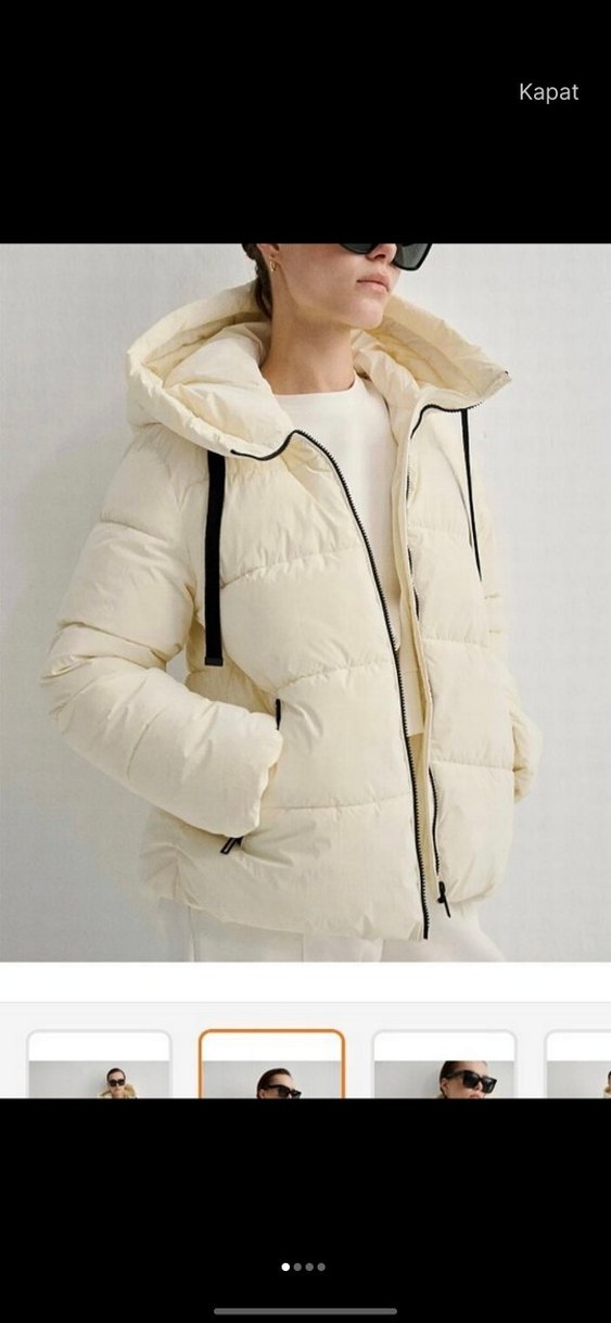 Beyaz Kapüşonlu Kadın Kışlık Puff Mont