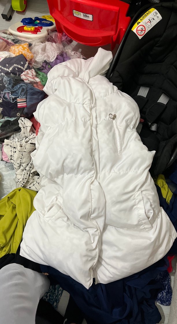 Kapüşonlu ve fermuarlı beyaz şişme yelek, sokak stili için rahat ve vücuda oturan kesimde tasarlanmıştır. Ürünün elyafı gözüküyor dağılma var geri iade yoktur