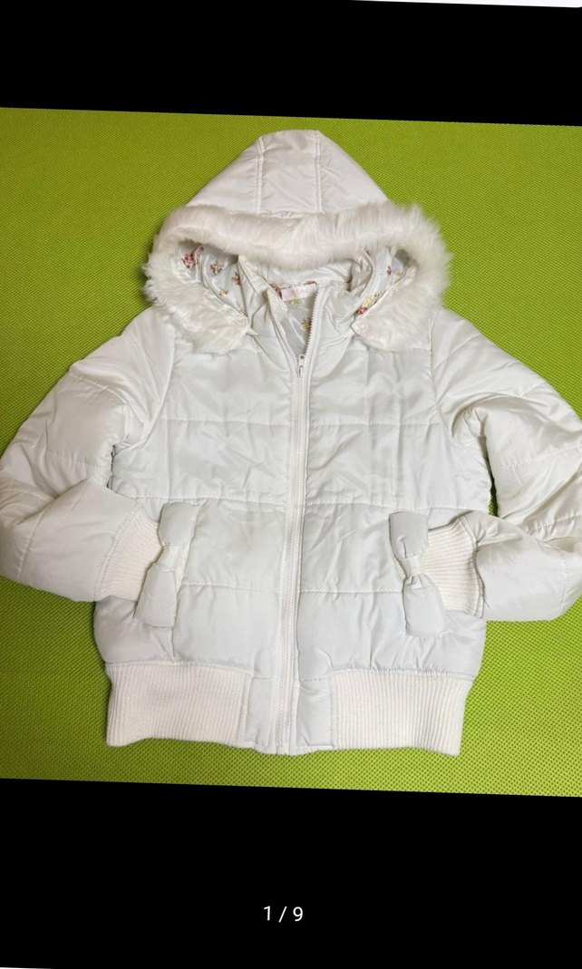 Beyaz, kapüşonlu ve kürklü detaylara sahip, yumuşak dokulu kışlık kadın mont. Normal midi boyda, uzun kollu ve rahat kesimle günlük kullanıma uygundur. ❄️ L beden yırtıcı sökügü yok yıka giy.