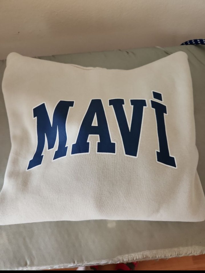 Beyaz renkli, kapüşonlu ve uzun kollu bu sweatshirt, bol kesim ve kısa boy özelliklerine sahiptir. Önünde MAVI Defoludur iade kabul etmiyorum!