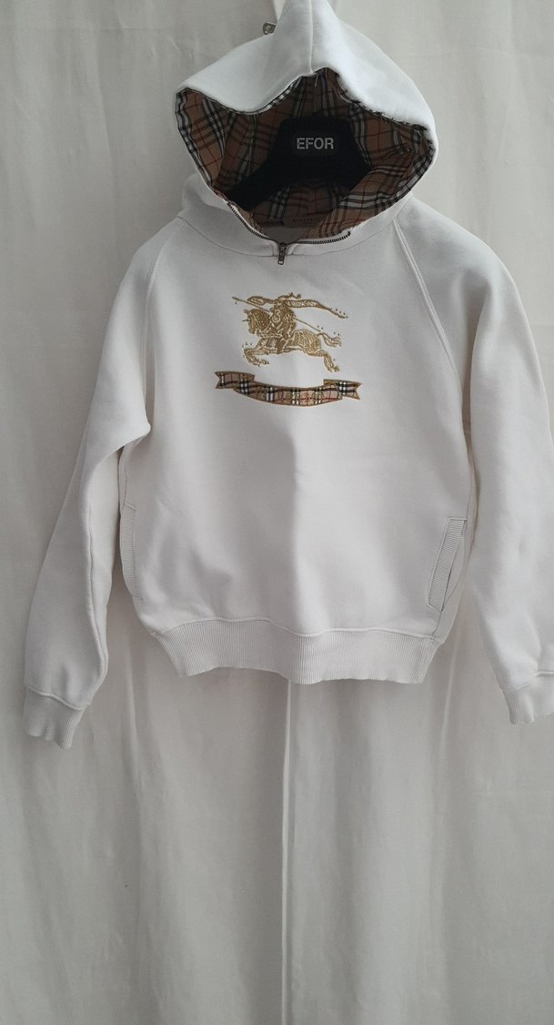 Beyaz, bol kesim, uzun kollu ve fermuarlı mini sweatshirt. Baskılı deseni ve parlak görünümüyle günlük sokak stiline uygun. Kapüşonun içi ekoseli desenlidir.