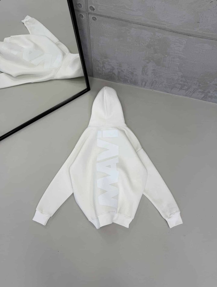 Tüm bedenleri mevcuttur Yumuşak ve sıcak kumaştan, uzun kollu, oversize kesim beyaz kapüşonlu sweatshirt. Desensiz, günlük kullanıma uygun, streetwear ve athleisure tarzında rahat bir model.