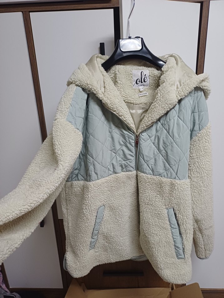 Beyaz Kapüşonlu Peluş Ceket