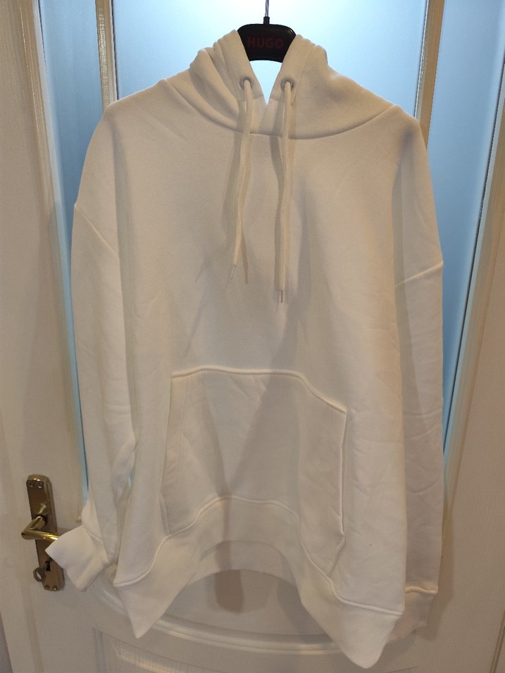 Beyaz kapüşonlu sweatshirt, rahat kesim ve uzun kolludur. Yumuşak ve sıcak kumaştan üretilmiştir. Günlük kullanım için uygun, sade ve cep detaylıdır. orijinal sıfır ihracat fazlası ürün göğüs S54 M57.L60.XL63.XXL66 boy S64.M67.L70.XL73.XXL76