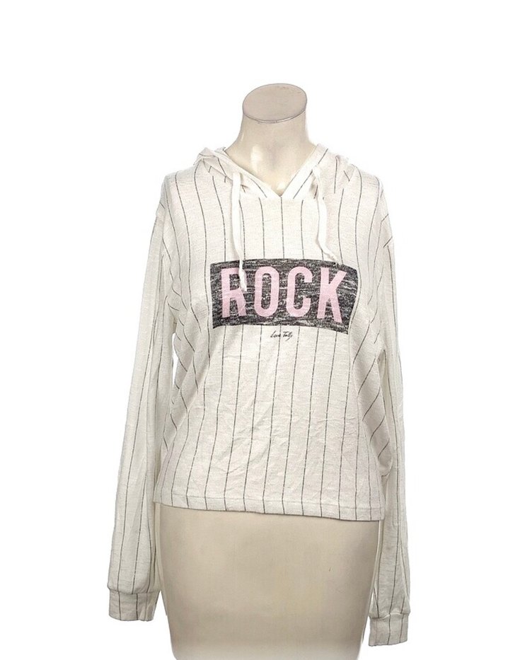 Beyaz Kapüşonlu Rock Punk Kadın Sweatshirt
