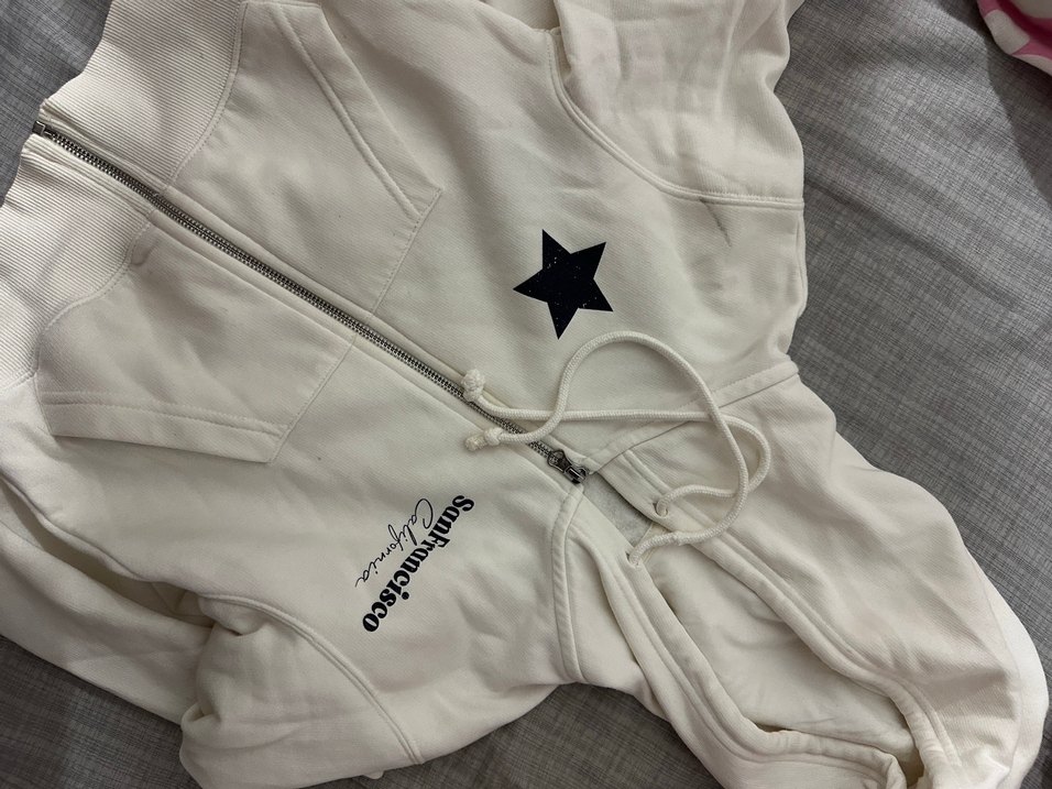 Siyah yıldız detaylı, kapüşonlu ve fermuarlı sweatshirt Yumuşak ve rahat kumaştan üretilmiştir.