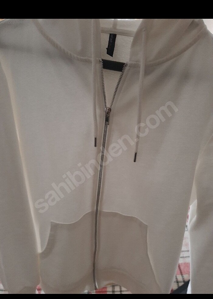 ILarge beden beyaz kapusonlu sweat kol uzunlugu 58 cm omuz 12 cm gogus 57 cm