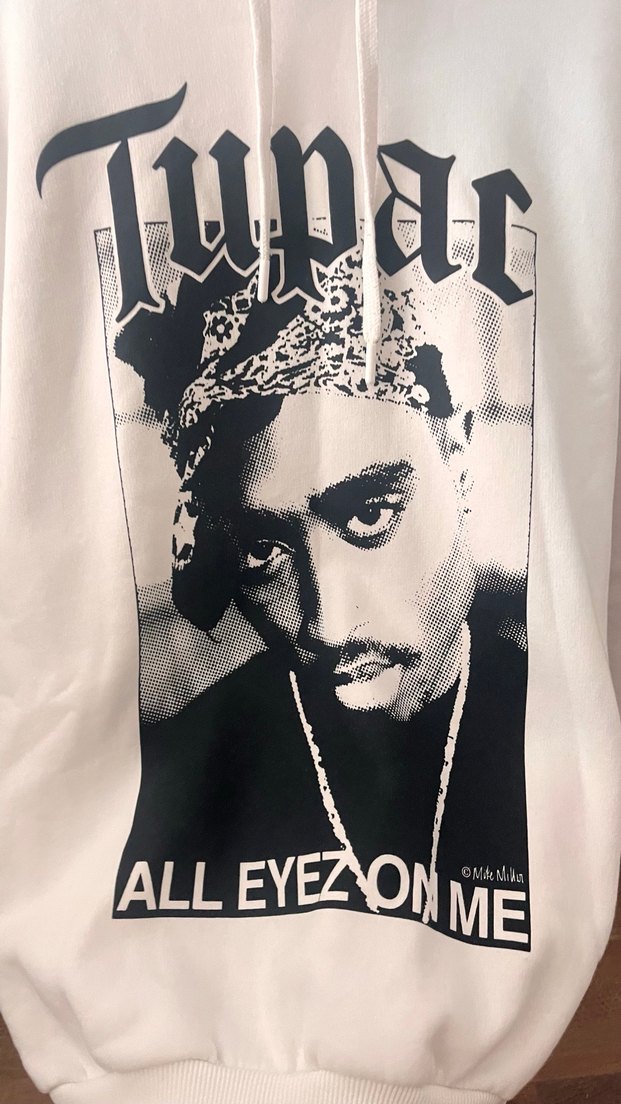 Beyaz Kapüşonlu Tupac Baskılı Erkek( unisex) Sweatshirt