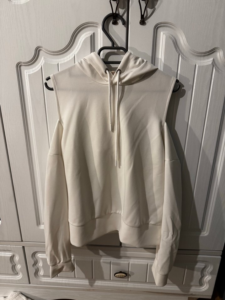 Beyaz Kapüşonlu Uzun Kollu Kadın Üst