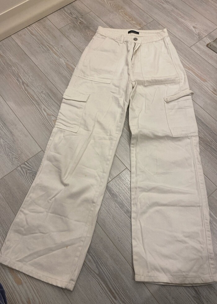 Beyaz kargo cepli jean