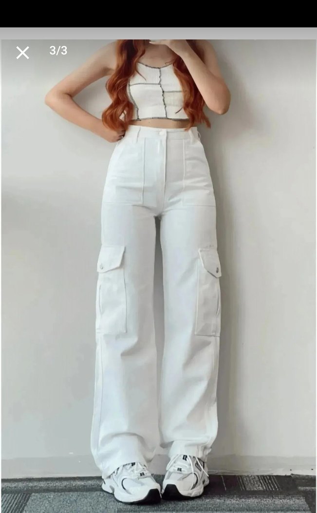 Beyaz Kargo pantolon sert kumaş yüksek bel