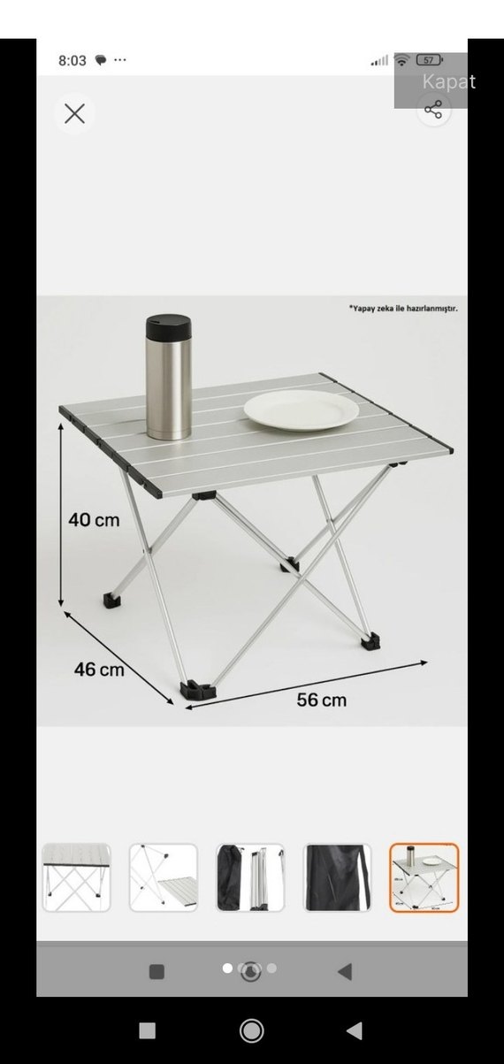 Baskılı yüzeye sahip çağdaş beyaz katlanabilir masa, 56x46x40 cm ölçülerindedir.