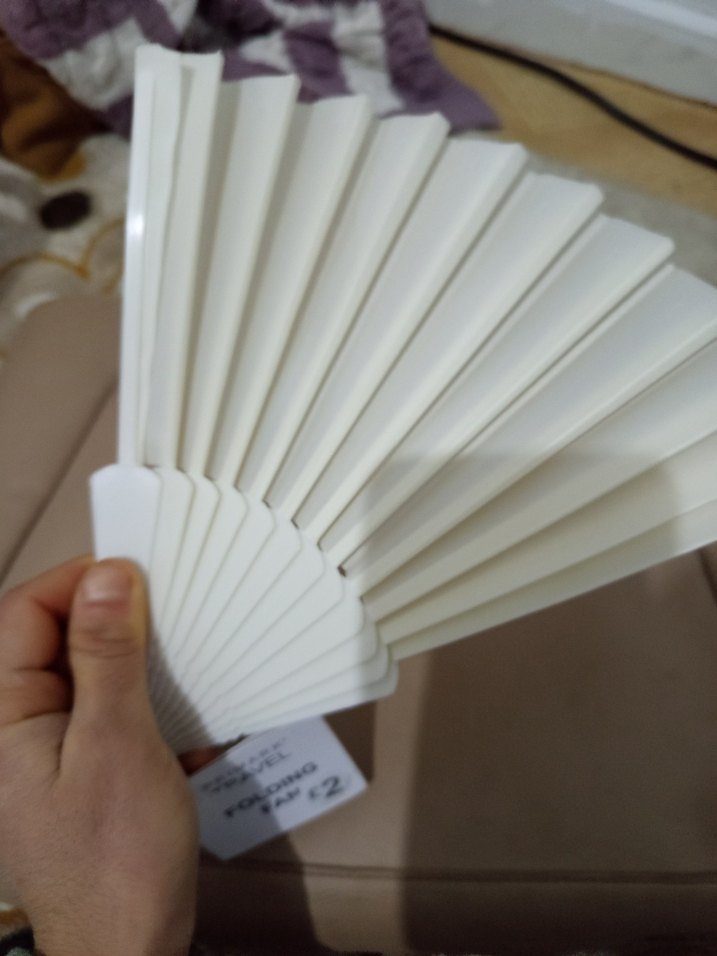 Elde tutulabilen, düzenli aralıklı beyaz katlanabilir yelpaze, hafif ve sade serinlik sağlar. ️