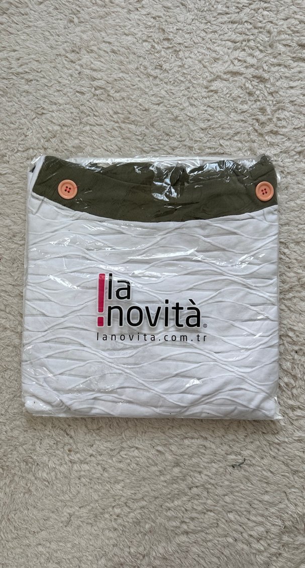 La Novita baskılı yazı ve düğme detaylı beyaz, yumuşak ve dokulu kumaştan üretilmiştir. ️