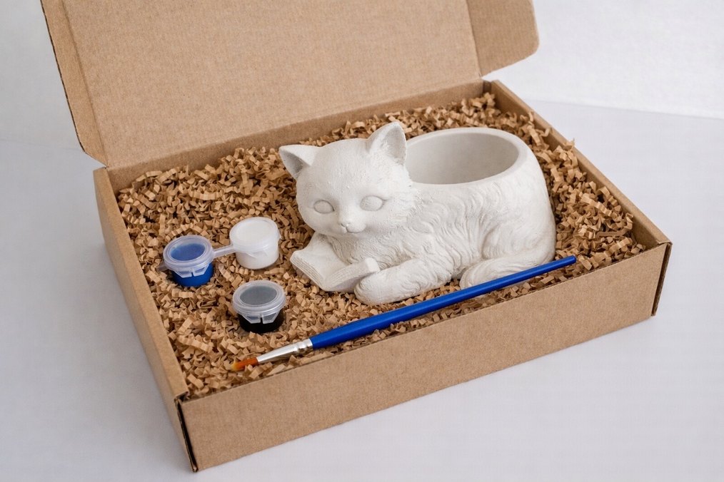 Ürün alçı değildir, 1. kalite seramik taş tozundan el emeği ile üretilmiştir. Kutu içeriği 1 adet kedi figürlü mini saksı, 3 adet su bazlı akrilik boya ve 1 adet fırçadan oluşur. Gönderilecek 3 boya rengi istenen kedi rengine göre değiştirilebilir, sipariş sonrası mesajla renk tercihi belirtilebilir. Montessori yaklaşımına uygun olup el becerilerini, ince motor gelişimini ve odaklanmayı destekler, çocuklar ve yetişkinler için birlikte kaliteli zaman geçirmeye uygundur. Sevgililer Günü, doğum günü ve özel günler için yaratıcı ve anlamlı bir hediye alternatifidir. Stresi azaltan, üretmeyi ve kendini ifade etmeyi destekleyen keyifli bir boyama deneyimi sunar. Ürün fotoğraftaki kutu ile özenle paketlenerek gönderilir, her yaş için uygundur.