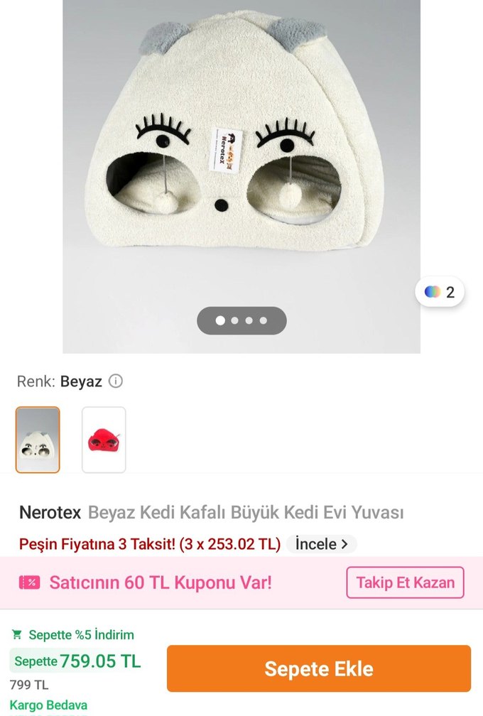 Yumuşak kumaşlı, beyaz kedi yüzü desenli büyük kedi evi. İçinde oynayabileceği iki top bulunur, kediniz için rahat bir alan sağlar. İçi minderlidir. Kedim kullanmadığı için satıyorum 2 kedi için de uygundur.