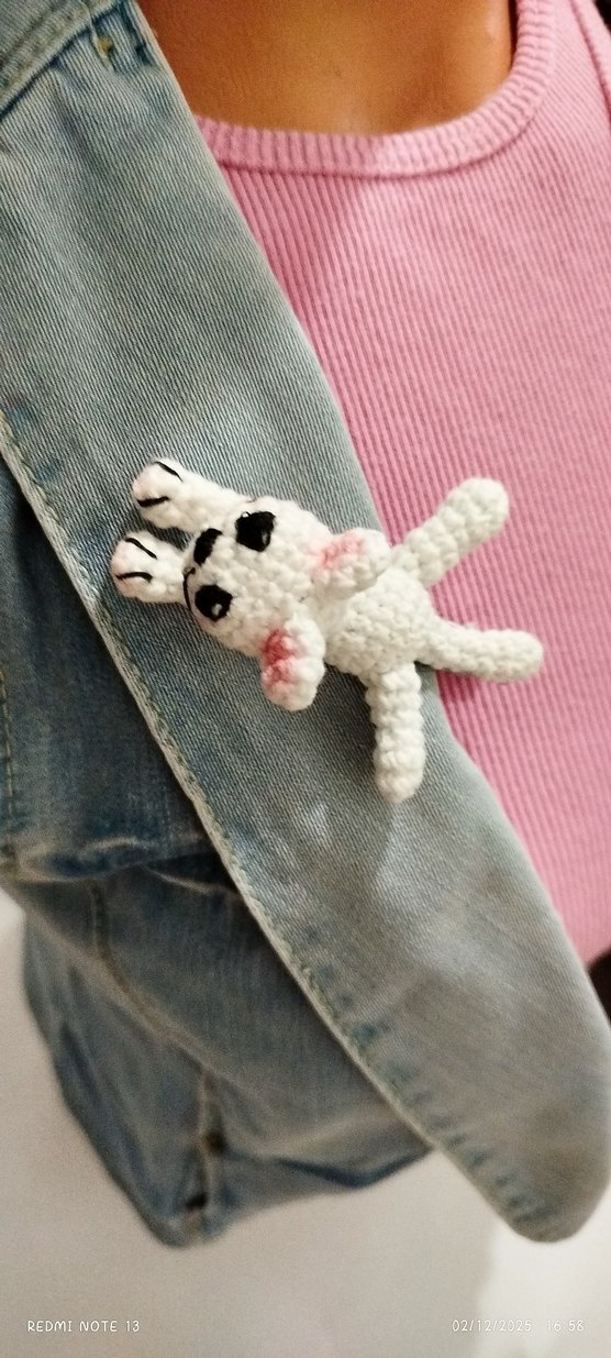 beyaz kedili el örgüsü sıfır el yapımı broş