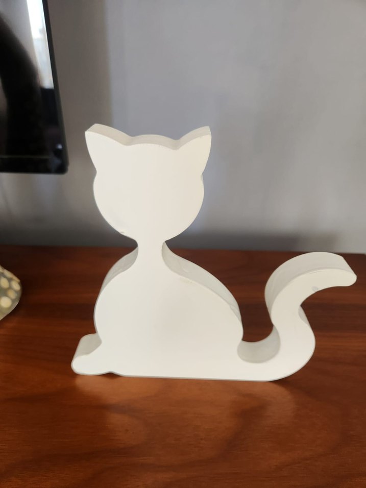 beyaz kedi şeklinde dekoratif aksesuar, mekanınıza zarif bir dokunuş katar. 18.5x19cm ahşap kedi.