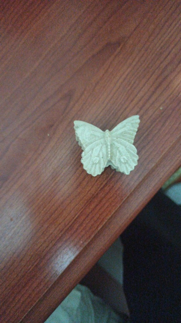 Kanat detaylarına sahip küçük beyaz kelebek figürin. Hafif malzemeden yapılmıştır.