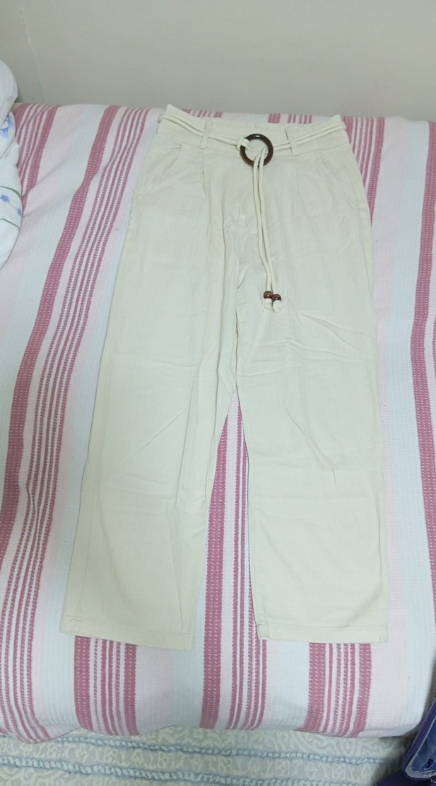Pamuklu kumaştan, beyaz renkli, bol kesim ve midi boy pantolon, kemerli tasarımıyla günlük şıklık sunar.