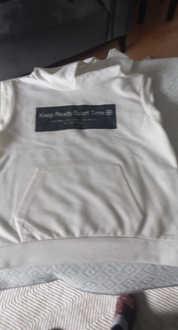 Beyaz renkli, kolsuz, kemerli ve baskılı erkek çocuk sweatshirtü. Dar kesim ve yuvarlak yaka, yumuşak ve sıcak kumaştan yapılmıştır.