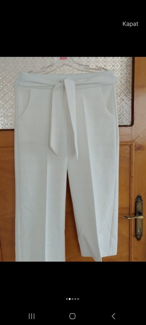 Beyaz Kemerli Kadın Kumaş Pantolon