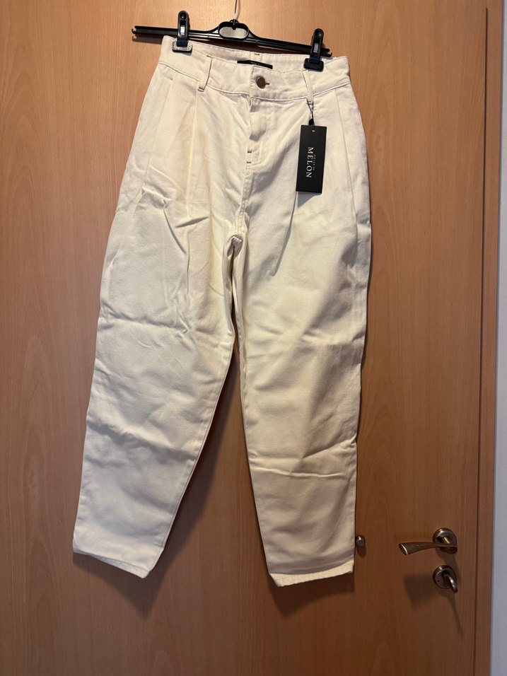 Yumuşak pamuk kumaştan, kemerli bel detayıyla beyaz kadın midi kot pantolon. Rahat kesimiyle günlük sokak stili için uygundur. Kırık beyaz rengi