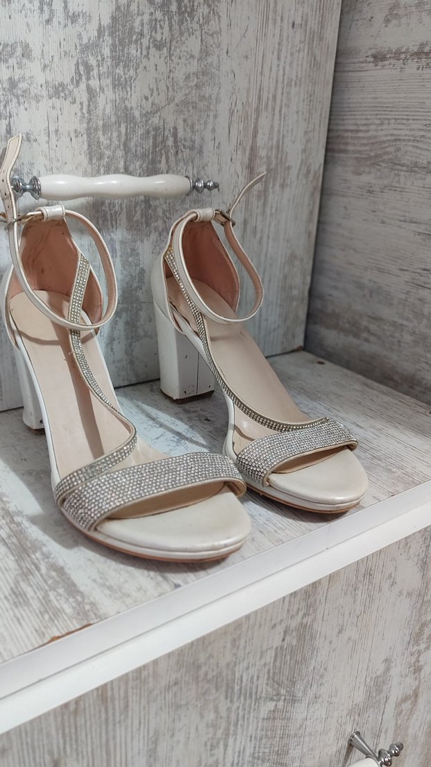 Beyaz Kemerli Kadın Topuklu Abiye Ayakkabı