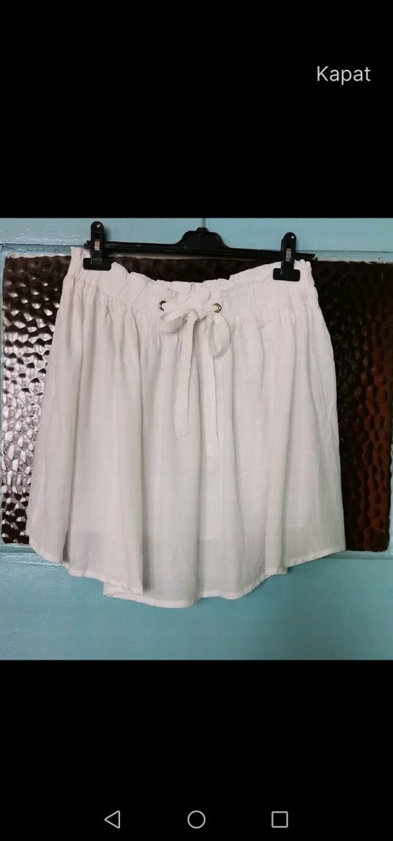 Beyaz renkli, kemerli bel detayına sahip, keten kumaştan üretilmiş bol kesim mini etek. Minimalist ve bohem tarzıyla günlük kullanıma uygundur. Kaliteli etek.. Beli lastikli bedende yanılmayın diye yarısını ölçtüm resimlerde var. Kumaşı tam yazlık