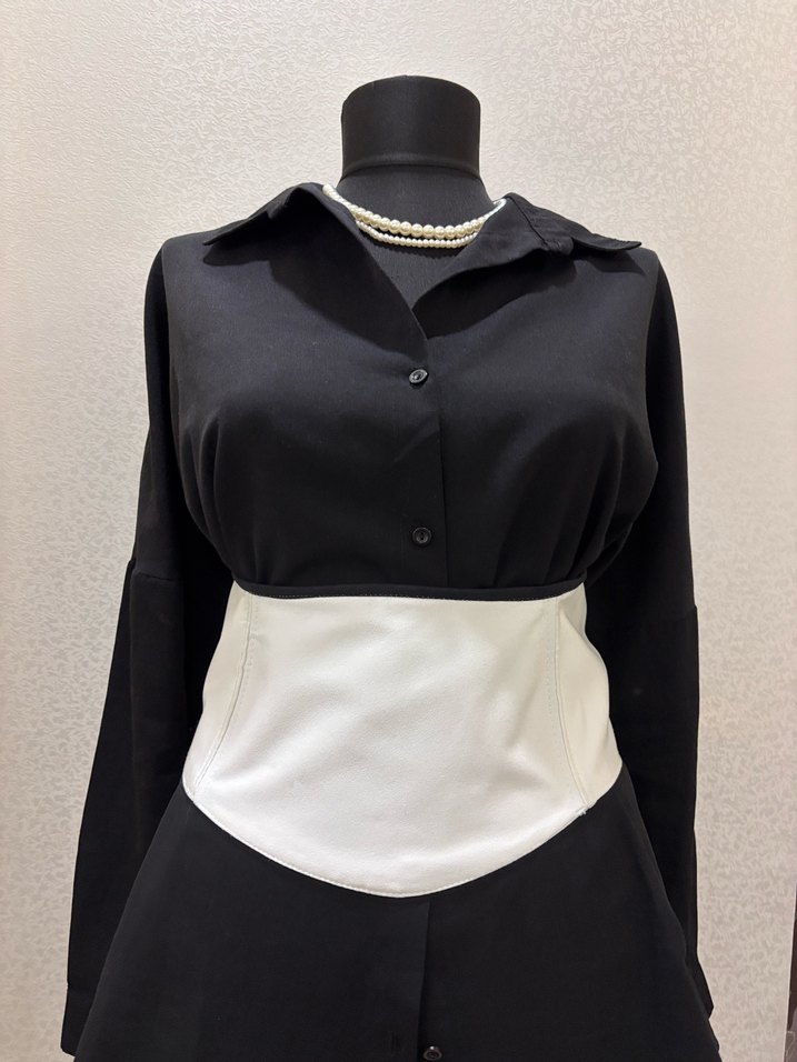 Kemer detaylı beyaz bel ile siyah, yakalı ve askılı kollu, midi boyda, sentetik kumaştan gömlek. Ofis için uygun, gotik Paris tarzı. El yapımı özel üretim korse modelleri.sipariş üzerine kişiye özel üretilmektedir. Bel toparlama ve form verme için özel kalıp kullanılmıştır. Her model sizin istediğiniz renk ve kumaşa göre hazırlanabilir. Üretim süresi 1-2 gündür. S-M-L bedenlere uyumlu olarak hazırlanır. Dilerseniz kendi beden ölçülerinize göre de çalışıyorum.