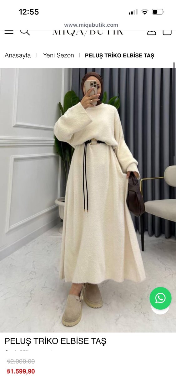 Beyaz uzun elbise, salaş kesim, uzun kollu ve yuvarlak yakalıdır. Yumuşak, sıcak kumaştan üretilmiş olup ince siyah kemerle şekillendirilmiştir. Rahat sokak stili için uygundur. 1-2 saat giyilmiştir fazlalıktan satıyorum