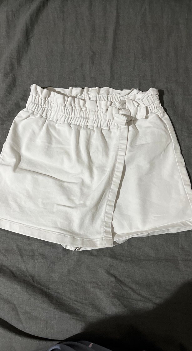 Yumuşak keten kumaştan üretilmiş, kemerli yüksek bel beyaz mini şort. Rahat kesimi ve gündelik sokak stili için uygun tasarımıyla dikkat çeker.