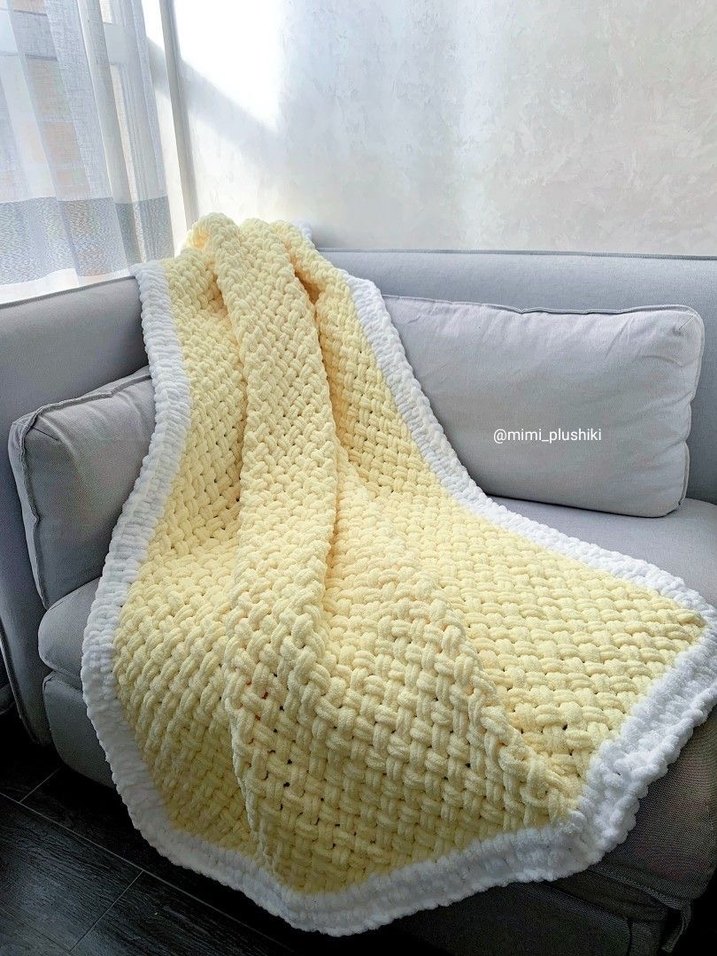 Beyaz Kenarlı Sarı Örgü Bebek Battaniyesi
