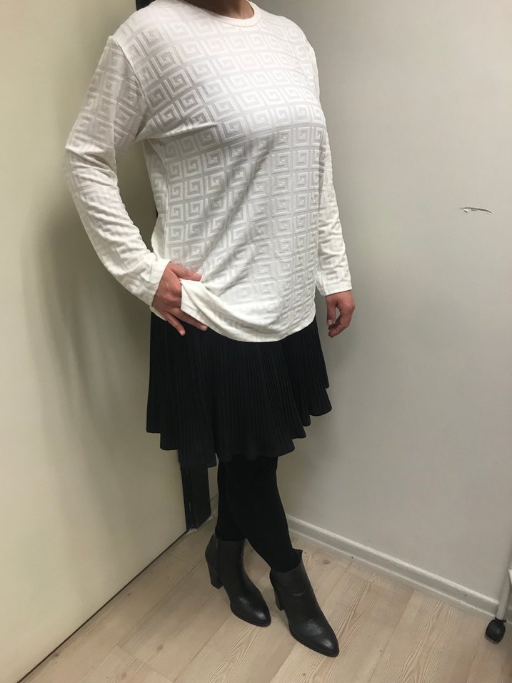 Beyaz kendinden desenli etek üstü yumuşak kumaş penye