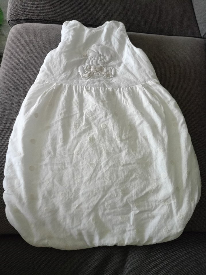 tertemiz kusursuz Yumuşak keten kumaştan yapılmış beyaz bebek uyku tulumu, göğüste hafif işlemeli detayla sade tasarım sunar. ️tüm uyku tulumları toplu olarak istenirse tek ilanda 2500 TL