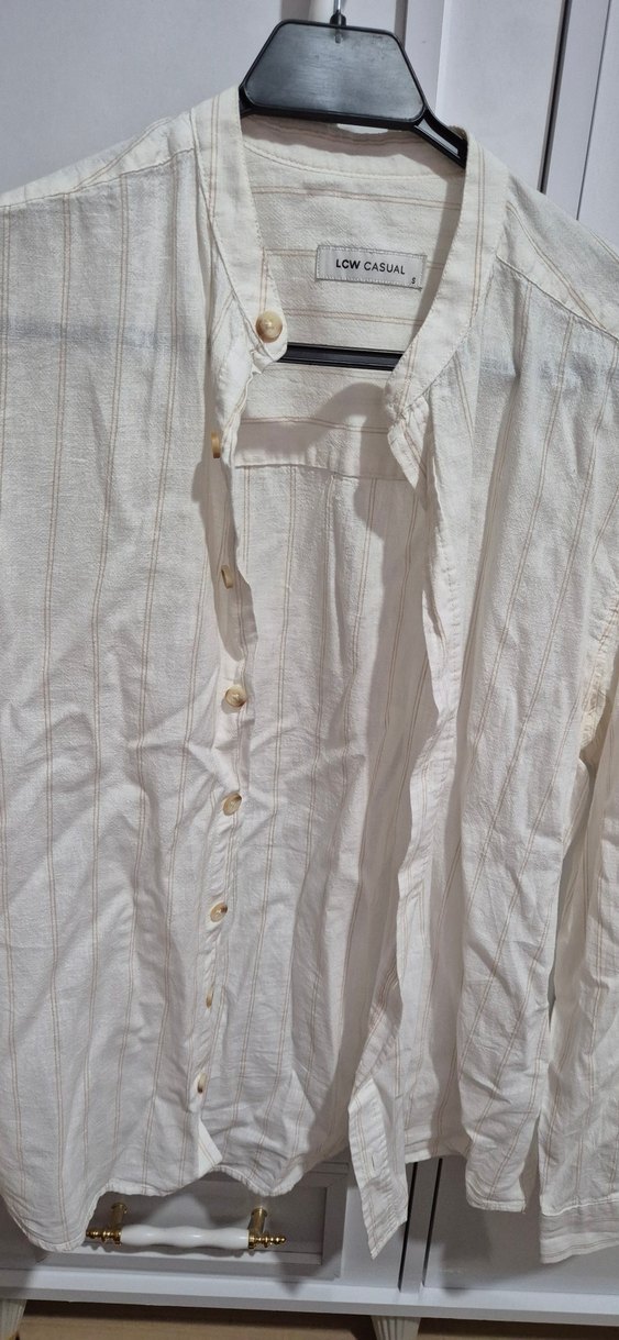 Beyaz keten kumaştan, düğmeli, bol kesim ve tek renk kadın gömlek. Kısa kollu, tekne yakalı, minimal bohem tarzıyla günlük kullanıma uygun.