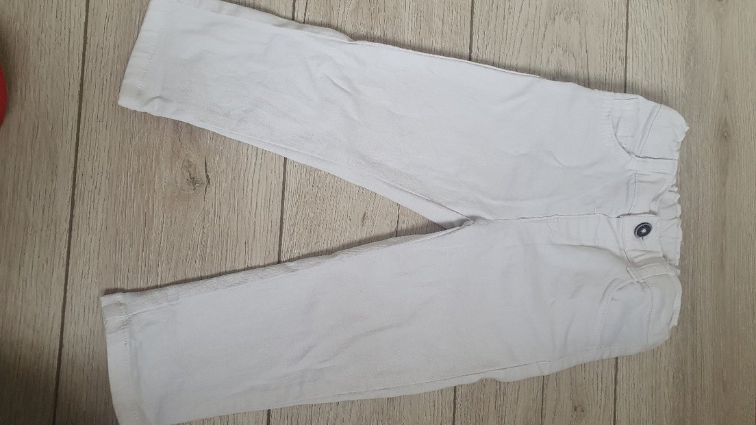 Beyaz keten kumaştan yapılmış, normal kesim ve erkek çocuk pantolonu. Çıkmayan bir sarı leke vardır fotoda gösterdim. çamaşır suyuyla çıkar muhtemelen ama çocuk giyiyor diye ben kullanmamıştım.