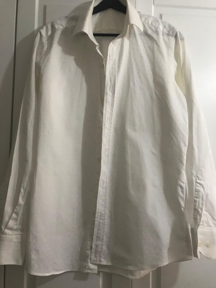 Beyaz keten kumaştan yapılmış, düğmeli ve uzun kollu erkek gömleği. Normal kesim ve sade tasarıma sahip, ofis kullanımı için uygundur. hatemoğlu Kalitelidir