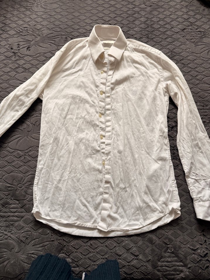 Beyaz keten kumaştan yapılmış, uzun kollu ve düğmeli erkek gömleği. Regular kesim, ofis veya günlük kullanıma uygun.