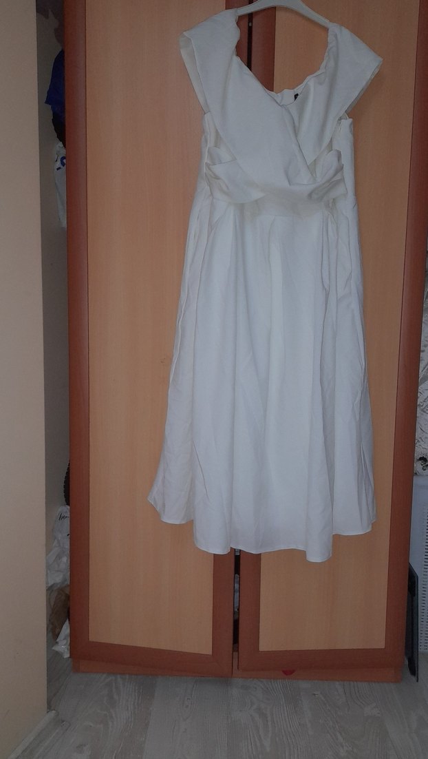 Drapeli, beyaz keten embise , rahat kesimiyle düğünler için uygundur. Minimalist ve normcore tarzıyla şık görünüm sağlar.