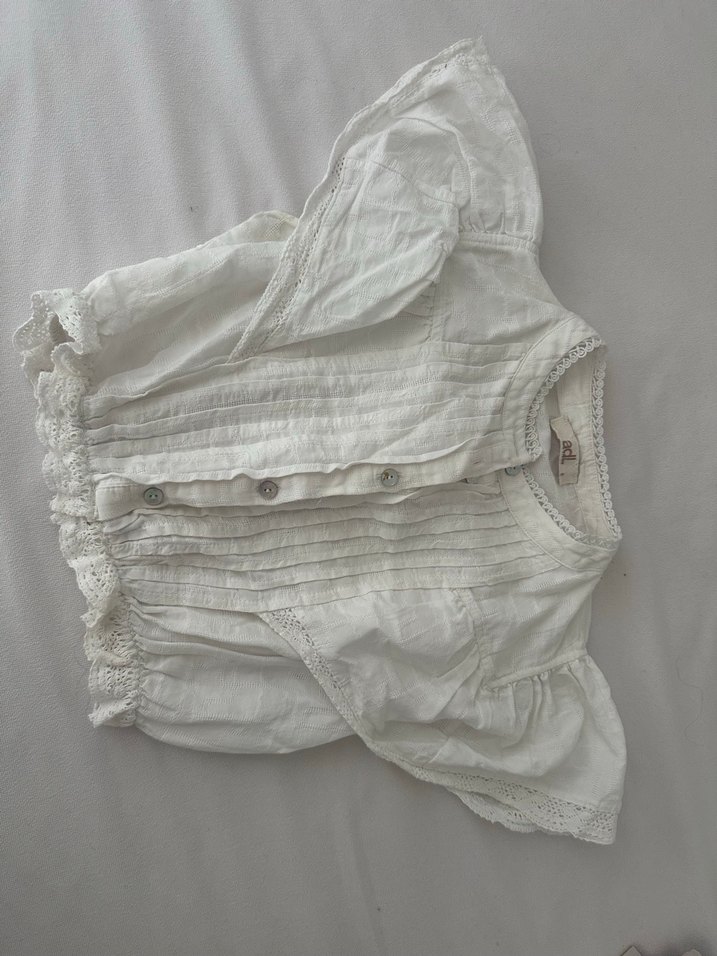 beyaz renkli, kısa fırfırlı kollu, bol kesim, kayık yaka ve işlemeli detaylara sahip bohem tarzda bluz.