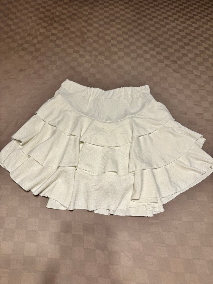 Beyaz keten kumaştan, fırfırlı detaylı, bol kesim midi etek. Hafif ve bohem tarzıyla günlük kullanıma uygundur.