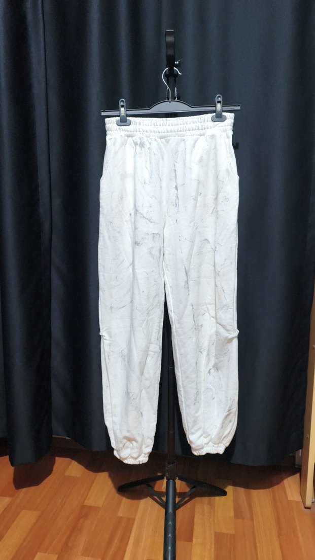 Beyaz keten, geniş kesim ve normal boyda kadın eşofman altı, şık ve modaya uygun şehir stili için uygundur. Günlük kullanıma ideal. ️